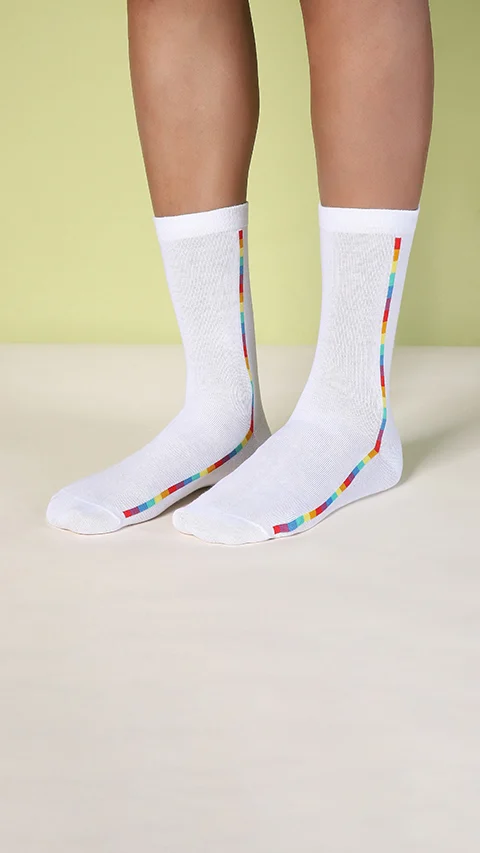 Aloe-Soft Calf Length Socks- Pride Steps White, Pride Steps White
